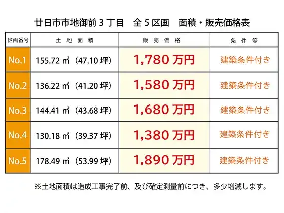 | 条件等 | 建築条件付 | ||