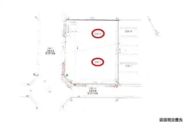 | 設備 | 倉庫・共同住宅有:鉄骨造スレート葺2階建 昭和45年12月築 321.1㎡ 地番:2126-1(154.42㎡)、2126-13(119.45㎡)、宅地分譲として一部売買可能(別途相談) | ||