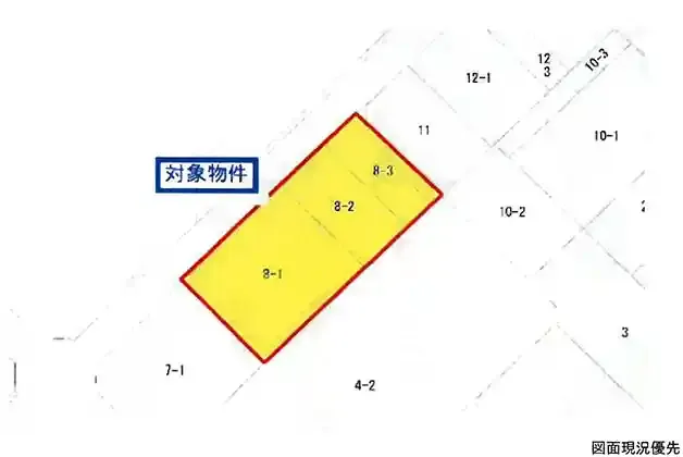 | 設備 | 上水道・ガス:引込無し トイレ:無し、表記土地面積は地番8-1(375.93㎡)、8-2(161.12㎡)、8-3(107.57㎡)の3筆合計面積です | ||