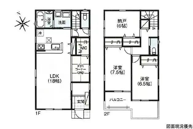 設備 | 温水洗浄便座、トイレ2ヶ所、浴室乾燥機、システムキッチン、カウンターキッチン、浄水器、ウォークインクローゼット、床下収納、洗髪洗面化粧台、上水道、下水道、複層ガラス、モニタ付インターホン、駐車場2台分、納戸(6帖)、タタミコーナー(3帖)、収納豊富、宅配Box、タグキー、リビング階段 | ||