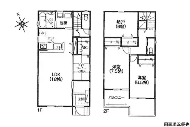 | 設備 | 温水洗浄便座、トイレ2ヶ所、浴室乾燥機、システムキッチン、カウンターキッチン、浄水器、ウォークインクローゼット、床下収納、洗髪洗面化粧台、上水道、下水道、複層ガラス、モニタ付インターホン、駐車場2台分、納戸(6帖)、タタミコーナー(3帖)、収納豊富、宅配Box、タグキー、リビング階段 | ||