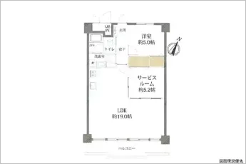 設備 | システムキッチン、トランクルーム、室内洗濯機置場、エレベーター、バイク置き場、駐輪場、サービスルーム(5.2帖)(トランクルーム:月額無料) | ||