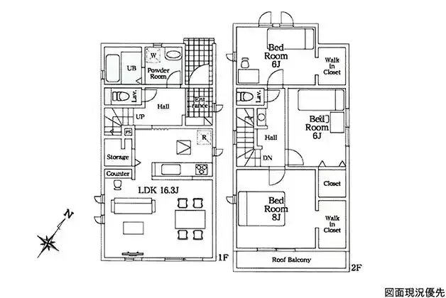 | 設備 | 温水洗浄便座、トイレ2ヶ所、浴室乾燥機、システムキッチン、カウンターキッチン、浄水器、ウォークインクローゼット、床下収納、洗髪洗面化粧台、照明器具、プロパンガス、上水道、下水道、複層ガラス、モニタ付インターホン、ルーフバルコニー、駐車場2台分、宅配Box、ストレージ | ||