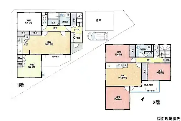 | 設備 | トイレ2ヶ所、システムキッチン、床下収納、プロパンガス、上水道、下水道、モニタ付インターホン、倉庫、納戸(6帖)、洗面室2ヶ所、シャワー室 | ||
