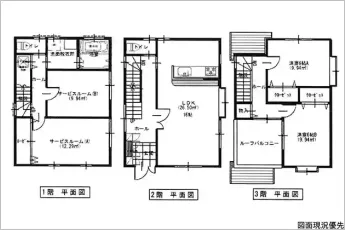 | 設備 | トイレ2ヶ所、浴室乾燥機、システムキッチン、カウンターキッチン、食器洗浄乾燥機、床下収納、洗髪洗面化粧台、グルニエ、照明器具、都市ガス、上水道、下水道、複層ガラス、モニタ付インターホン、駐車場2台分、納戸(4.3帖)、折上天井、リビング階段、収納充実 | ||