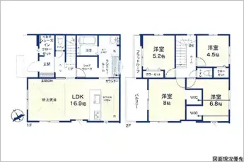 設備 | トイレ2ヶ所、システムキッチン、カウンターキッチン、食器洗浄乾燥機、ウォークインクローゼット、床下収納、洗髪洗面化粧台、都市ガス、上水道、下水道、モニタ付インターホン、駐車場2台分、SIC、シェアクローク、ランドリールーム、折上天井 | ||