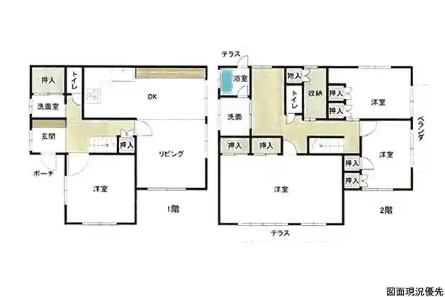 設備 | トイレ2ヶ所、駐車場3台分、収納豊富、L型キッチン、テラス | ||