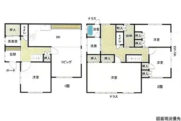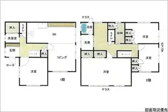 | 設備 | トイレ2ヶ所、駐車場3台分、収納豊富、L型キッチン、テラス | ||