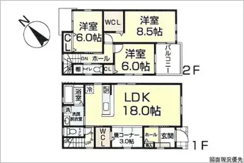 | 設備 | トイレ2ヶ所、浴室乾燥機、システムキッチン、カウンターキッチン、ウォークインクローゼット、洗髪洗面化粧台、都市ガス、上水道、下水道、モニタ付インターホン、駐車場4台分、畳コーナー(3帖)、宅配Box、駐輪スペース | ||
