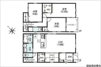 | 設備 | 温水洗浄便座、トイレ2ヶ所、追焚機能、浴室乾燥機、システムキッチン、カウンターキッチン、浄水器、ウォークインクローゼット、床下収納、洗髪洗面化粧台、都市ガス、上水道、下水道、複層ガラス、モニタ付インターホン、駐車場4台分、畳コーナー(3帖)、宅配Box、駐輪スペース、タグキー | ||