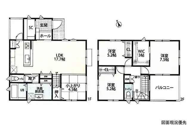 | 設備 | トイレ2ヶ所、システムキッチン、カウンターキッチン、IHクッキングヒーター、ウォークインクローゼット、洗髪洗面化粧台、上水道、下水道、モニタ付インターホン、駐車場3台分、SIC、パントリー、インナーバルコニー、リビング階段 | ||