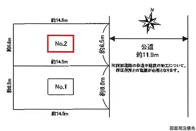 前面道路北東約11.9m!間口約6.5m!奥行約14.5m!