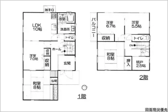 設備 | トイレ2ヶ所、システムキッチン、ウォークインクローゼット、プロパンガス、上水道、下水道、モニタ付インターホン、駐車場2台分、リビング階段 | ||