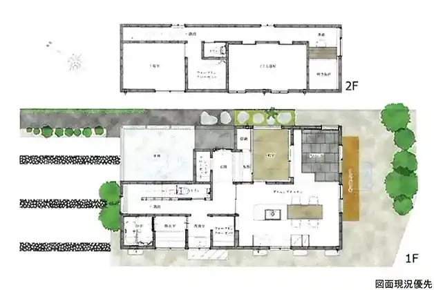 | 設備 | トイレ2ヶ所、システムキッチン、食器洗浄乾燥機、ウォークインクローゼット、エアコン、CATV、モニタ付インターホン、玄関土間・SIC、ウッドデッキ | ||