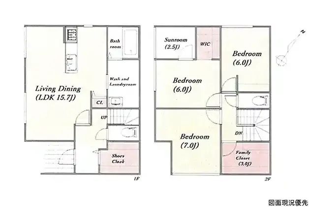 | 設備 | 温水洗浄便座、トイレ2ヶ所、システムキッチン、カウンターキッチン、IHクッキングヒーター、食器洗浄乾燥機、ウォークインクローゼット、床下収納、洗髪洗面化粧台、電気、上水道、複層ガラス、モニタ付インターホン、駐車場2台分、サンルーム・ランドリールーム、SIC、FCL、パントリー | ||