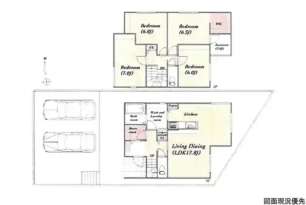 | 設備 | トイレ2ヶ所、システムキッチン、カウンターキッチン、IHクッキングヒーター、食器洗浄乾燥機、ウォークインクローゼット、床下収納、洗髪洗面化粧台、上水道、下水道、モニタ付インターホン、駐車場2台分、SIC、サンルーム、パントリー | ||