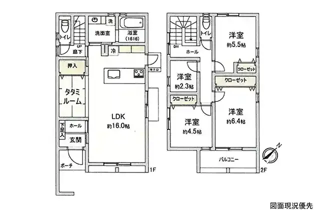 | 設備 | トイレ2ヶ所、システムキッチン、カウンターキッチン、洗髪洗面化粧台、モニタ付インターホン、駐車場2台分、タタミルーム | ||