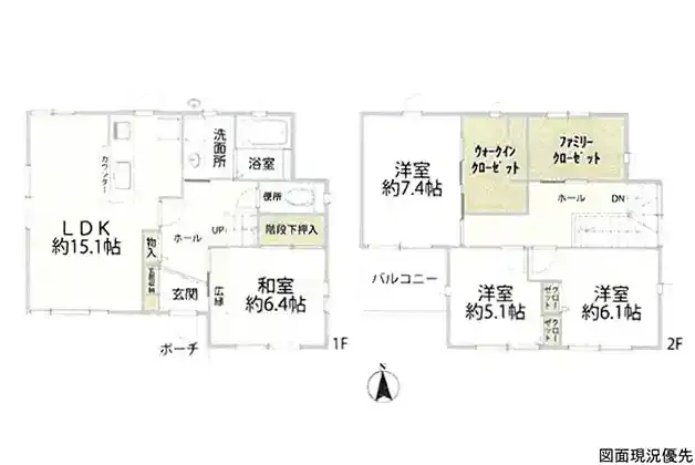 | 設備 | システムキッチン、カウンターキッチン、IHクッキングヒーター、ウォークインクローゼット、上水道、下水道、モニタ付インターホン、庭、広縁、FCL | ||