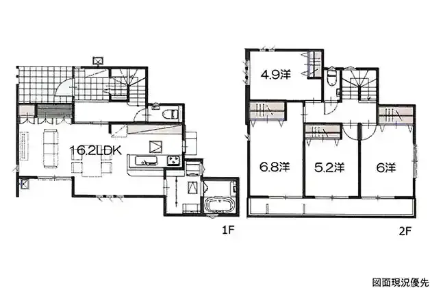 | 設備 | 温水洗浄便座、トイレ2ヶ所、システムキッチン、カウンターキッチン、床下収納、洗髪洗面化粧台、照明器具、都市ガス、上水道、下水道、モニタ付インターホン、駐車場3台分、カップボード、SIC、室内物干し、宅配Box、EVコンセント | ||