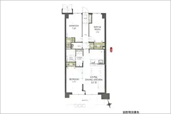 | 設備 | 浴室乾燥機、システムキッチン、カウンターキッチン、ウォークインクローゼット、室内洗濯機置場、エレベーター、洗髪洗面化粧台、オートロック、バイク置き場、駐輪場、サービスルーム | ||
