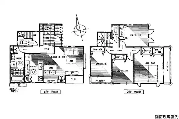 | 設備 | 温水洗浄便座、トイレ2ヶ所、浴室乾燥機、システムキッチン、カウンターキッチン、IHクッキングヒーター、食器洗浄乾燥機、床下収納、洗髪洗面化粧台、上水道、下水道、複層ガラス、モニタ付インターホン、駐車場2台分、カップボード、玄関ドア電子錠、スタディカウンター、外構付、玄関クローク、ダブルバルコニー | ||