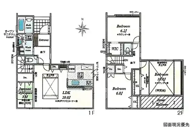 | 設備 | トイレ2ヶ所、浴室乾燥機、システムキッチン、カウンターキッチン、IHクッキングヒーター、食器洗浄乾燥機、ウォークインクローゼット、床下収納、洗髪洗面化粧台、照明器具、上水道、下水道、複層ガラス、モニタ付インターホン、駐車場3台分、タタミコーナー(3帖)、折上天井、収納充実、太陽光パネル搭載(月額利用料要) | ||
