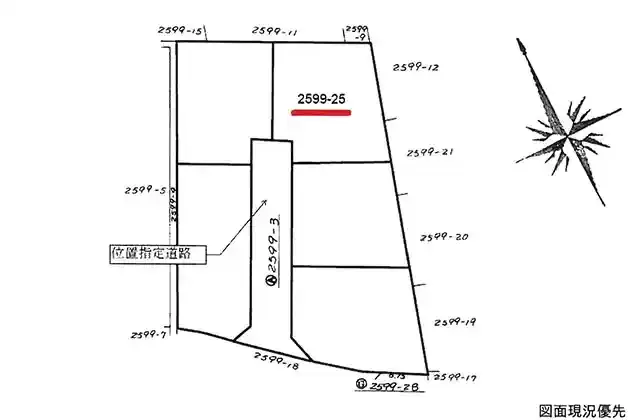 | 接道状況 | 南西4m 位置指定有 一方道路 | ||