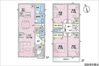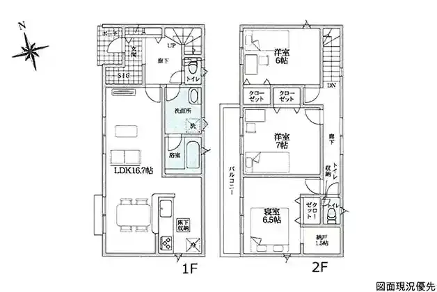 | 設備 | 温水洗浄便座、トイレ2ヶ所、浴室乾燥機、システムキッチン、カウンターキッチン、床下収納、洗髪洗面化粧台、照明器具、都市ガス、上水道、下水道、複層ガラス、モニタ付インターホン、防犯カメラ、駐車場2台分、収納豊富、納戸(1.5帖) | ||