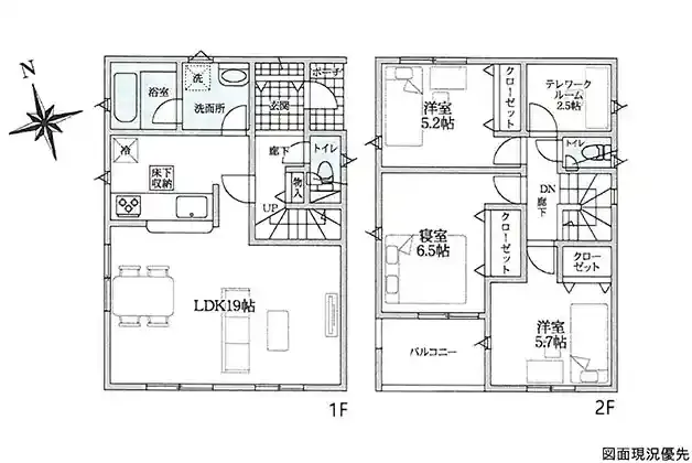 | 設備 | 温水洗浄便座、トイレ2ヶ所、浴室乾燥機、システムキッチン、カウンターキッチン、床下収納、洗髪洗面化粧台、照明器具、都市ガス、上水道、下水道、複層ガラス、モニタ付インターホン、防犯カメラ、ルーフバルコニー、駐車場2台分、収納豊富、サービススペース(2.5帖) | ||