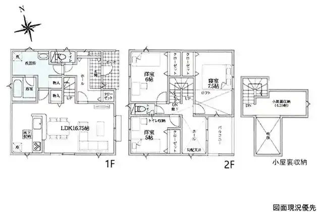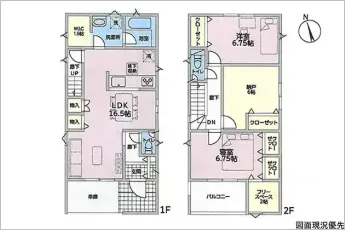 | 設備 | 温水洗浄便座、トイレ2ヶ所、浴室乾燥機、システムキッチン、カウンターキッチン、床下収納、洗髪洗面化粧台、グルニエ、照明器具、都市ガス、上水道、下水道、複層ガラス、モニタ付インターホン、防犯カメラ、ルーフバルコニー、駐車場3台分、収納豊富 | ||