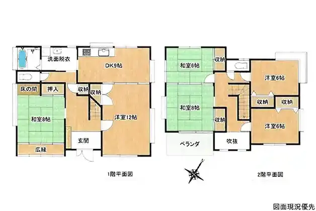 | 設備 | トイレ2ヶ所、システムキッチン、都市ガス、上水道、下水道、駐車場2台分、全居室6帖以上、広縁 | ||
