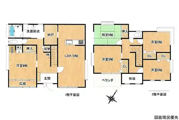 | 設備 | 温水洗浄便座、トイレ2ヶ所、システムキッチン、カウンターキッチン、洗髪洗面化粧台、都市ガス、上水道、下水道、モニタ付インターホン、庭、駐車場2台分、全居室6帖以上、広縁 | ||