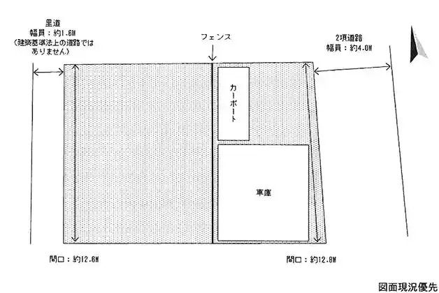 | 接道状況 | 東4m 接面12.8m 西1.6m 接面12.6m 二方道路(除角地) | ||