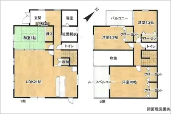| 設備 | 温水洗浄便座、システムキッチン、カウンターキッチン、洗髪洗面化粧台、都市ガス、上水道、下水道、モニタ付インターホン、駐車場2台分 | ||