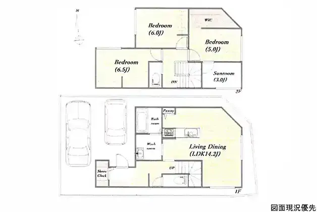 | 設備 | トイレ2ヶ所、システムキッチン、カウンターキッチン、ウォークインクローゼット、洗髪洗面化粧台、都市ガス、上水道、下水道、モニタ付インターホン、駐車場2台分、サンルーム(3帖)、SIC | ||