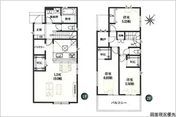 | 設備 | 温水洗浄便座、トイレ2ヶ所、システムキッチン、カウンターキッチン、IHクッキングヒーター、ウォークインクローゼット、床下収納、洗髪洗面化粧台、上水道、下水道、複層ガラス、モニタ付インターホン、駐車場2台分、パントリー、FCL、納戸 | ||