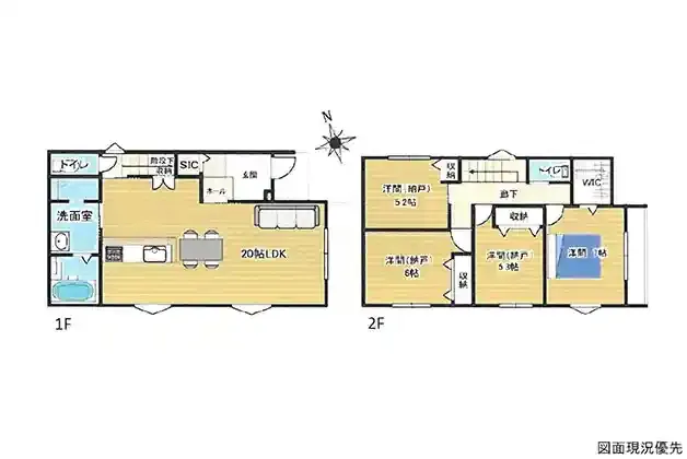 | 設備 | トイレ2ヶ所、浴室乾燥機、システムキッチン、カウンターキッチン、IHクッキングヒーター、ウォークインクローゼット、床下収納、洗髪洗面化粧台、上水道、下水道、モニタ付インターホン、駐車場2台分、全居室収納、SIC、リビング階段 | ||
