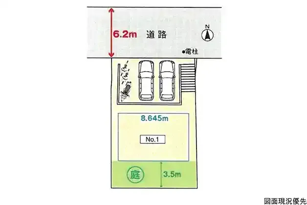 前面道路は北約6.2m!
