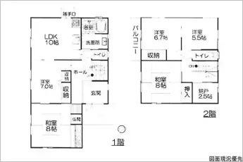 | 設備 | 温水洗浄便座、トイレ2ヶ所、追焚機能、浴室乾燥機、システムキッチン、カウンターキッチン、ウォークインクローゼット、床下収納、洗髪洗面化粧台、プロパンガス、上水道、下水道、モニタ付インターホン、駐車場2台分、SIC、納戸、インナーバルコニー | ||