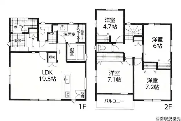 | 設備 | トイレ2ヶ所、システムキッチン、カウンターキッチン、洗髪洗面化粧台、都市ガス、浄化槽、モニタ付インターホン、駐車場3台分、物干しスぺース | ||