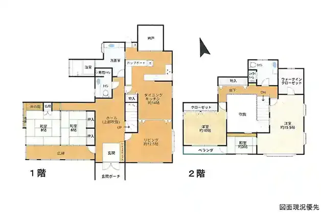 | 設備 | トイレ2ヶ所、システムキッチン、ウォークインクローゼット、プロパンガス、浄化槽、駐車場2台分、井戸、納戸、広縁、シャワールーム、L型キッチン、カップボード | ||