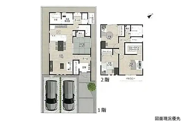 | 設備 | トイレ2ヶ所、システムキッチン、IHクッキングヒーター、食器洗浄乾燥機、ウォークインクローゼット、洗髪洗面化粧台、上水道、下水道、モニタ付インターホン、駐車場2台分、SIC、ペニンシュラキッチン、リビング階段 | ||