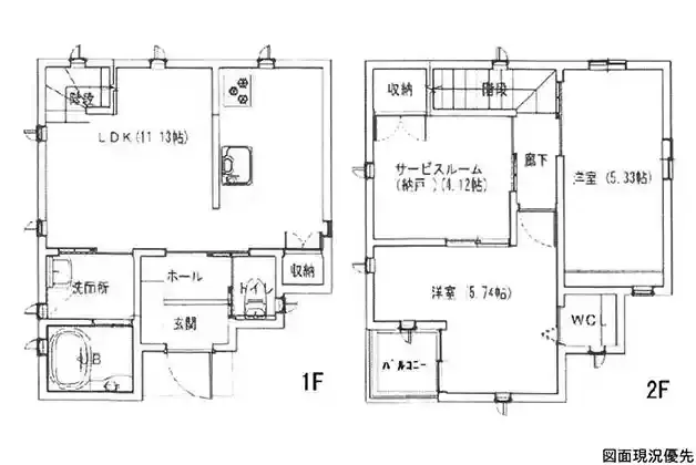 | 設備 | システムキッチン、カウンターキッチン、IHクッキングヒーター、ウォークインクローゼット、洗髪洗面化粧台、上水道、下水道、モニタ付インターホン、サービスルーム(4.12帖)、リビング階段 | ||