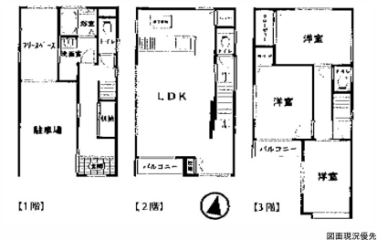 | 設備 | システムキッチン、カウンターキッチン、床下収納、照明器具、都市ガス、上水道、下水道、駐車場2台分、トイレ3ヶ所、フリースペース、バルコニー2ヶ所 | ||